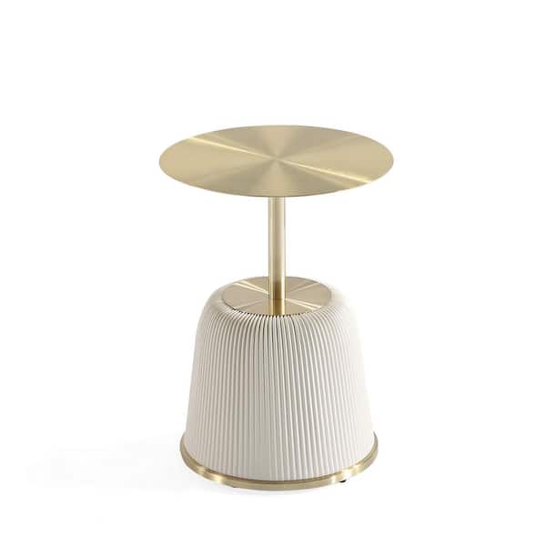 Anderson Modern 15.75 in. Cream Round Metal Faux Leather Upholstered End Table (Set of 2)