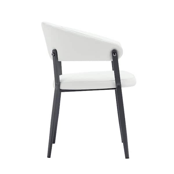 Belle Modern White Textured Faux Leather Upholstered Dining Arm Chair with Metal Legs