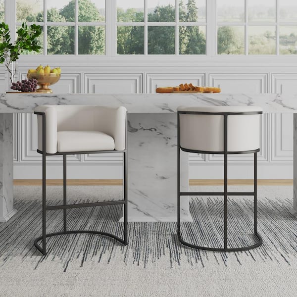 Cosmopolitan 29.5 in. Cream and Black Metal Bar Stool with Faux Leather Upholstered Seat (Set of 3)
