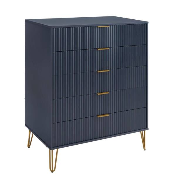 DUMBO Midnight Blue Modern 5-Drawer 35.19 in. W Dresser with SNAP Assembly - Tool-Free, Effortless Setup