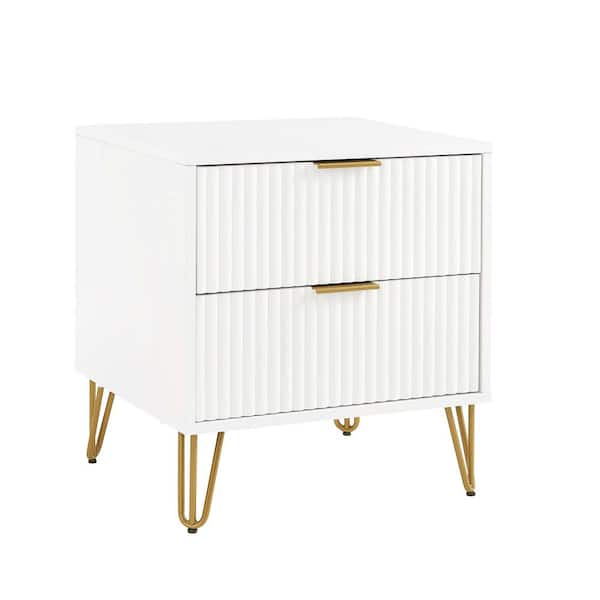 DUMBO Modern White 2-Drawer 20.07 in. W Nightstand with SNAP Assembly - Tool-Free, Effortless Setup