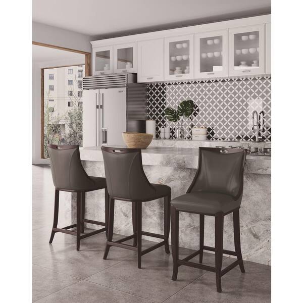 Emperor 27 in. Pebble Grey Beech Wood Barstool with Faux Leather Upholstered Seat (Set of 3)