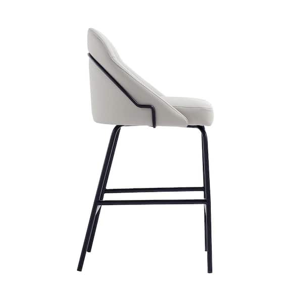 Gracie 26 in. Modern Stone and Black Metal Frame Counter Height Bar Stool with Faux Leather Upholstered Seat