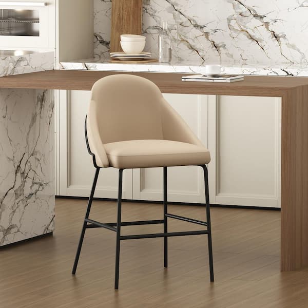 Gracie 26 in. Modern Tan and Black Metal Frame Counter Height Bar Stool with Faux Leather Upholstered Seat