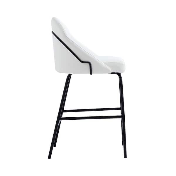 Gracie 26 in. Modern White and Black Metal Frame Counter Height Bar Stool with Faux Leather Upholstered Seat (Set of 3)