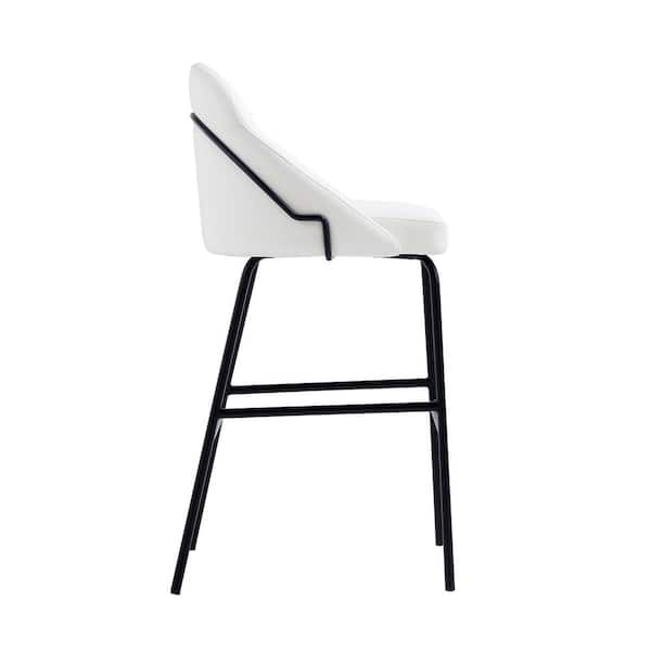 Gracie 29.1 in. Modern White and Black Metal Frame Bar Stool with Faux Leather Upholstered Seat