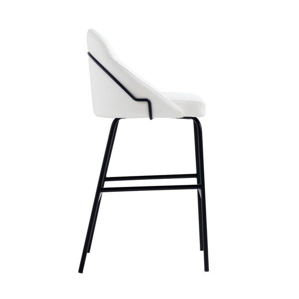 Gracie 29.1 in. Modern White and Black Metal Frame Bar Stool with Faux Leather Upholstered Seat (Set of 2)