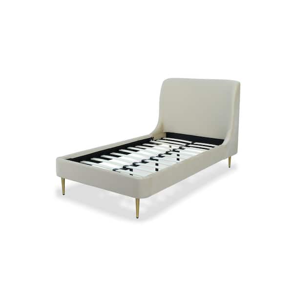 Heather Mid-Century Modern White Velvet Upholstered Wood Frame Twin-Size Platform Bed with Gold Legs