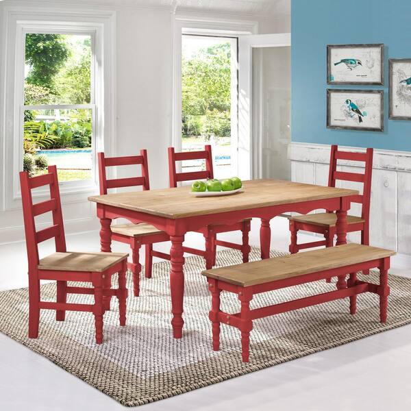 Jay 6-Piece Red Wash Solid Wood Dining Set with 1-Bench, 4-Chairs and 1-Table
