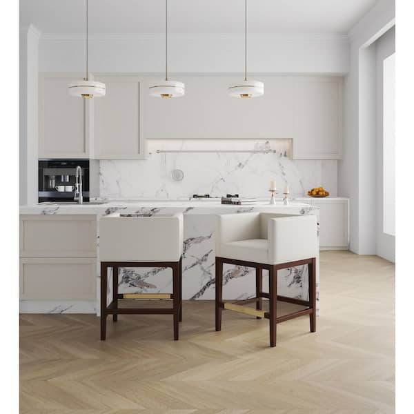 Kingsley 26 in. Ivory and Dark Walnut Beech Wood Counter Stool with Faux Leather Upholstered Seat (Set of 3)
