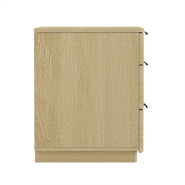 Payton Modern Natural Oak 3-Drawer 26 in. W Nightstand with Black Handles (Set of 2)
