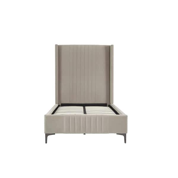 Promenade Beige Mid-Century Modern Velvet Upholstered Wood Frame Twin-Size Platform Bed