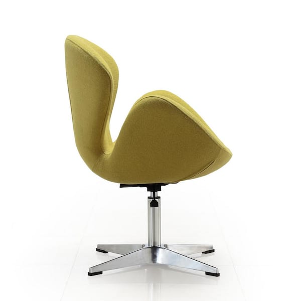 Raspberry Modern Green and Polished Chrome Wool Blend Upholstered Swivel Accent Arm Chair