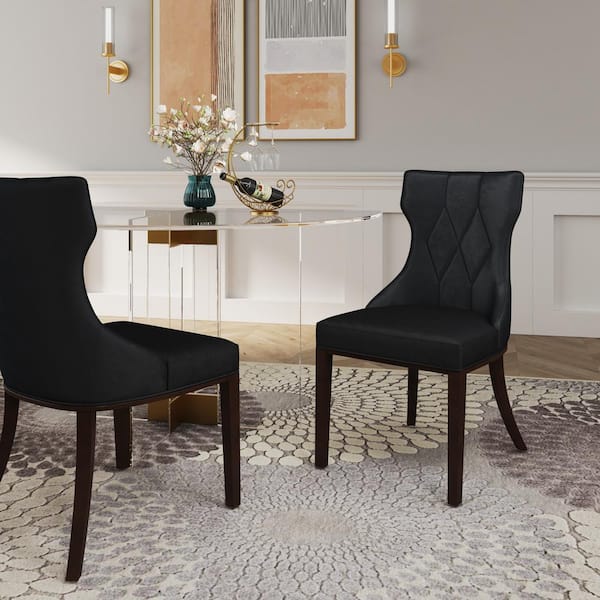 Reine Black and Walnut Velvet Upholstered Dining Chair (Set of 2)