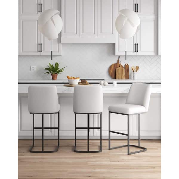 Serena Modern 29.13 in. White Metal Bar Stool with Faux Leather Upholstered Seat (Set of 3)