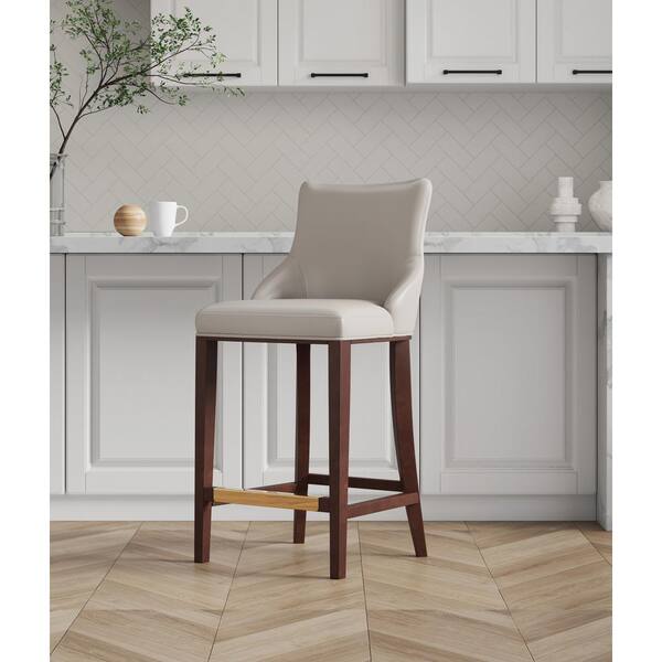 Shubert 29.13 in. Light Grey Beech Wood Bar Stool with Faux Leather Upholstered Seat