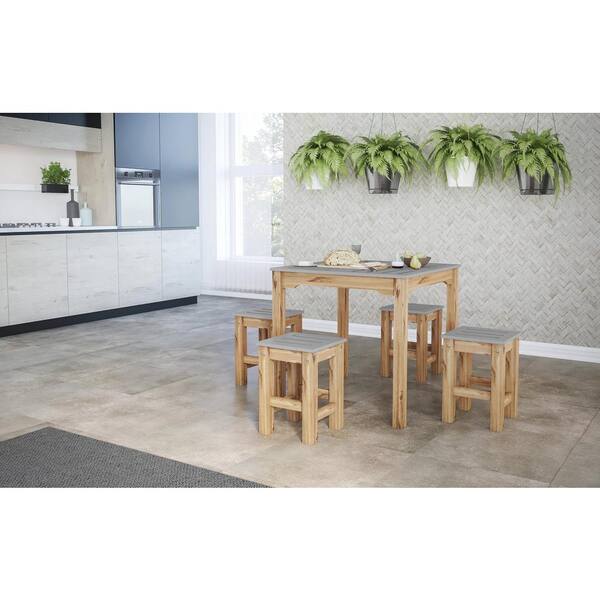 Stillwell 31.5 in. 5-Piece Gray and Natural Wood Square Dining Set