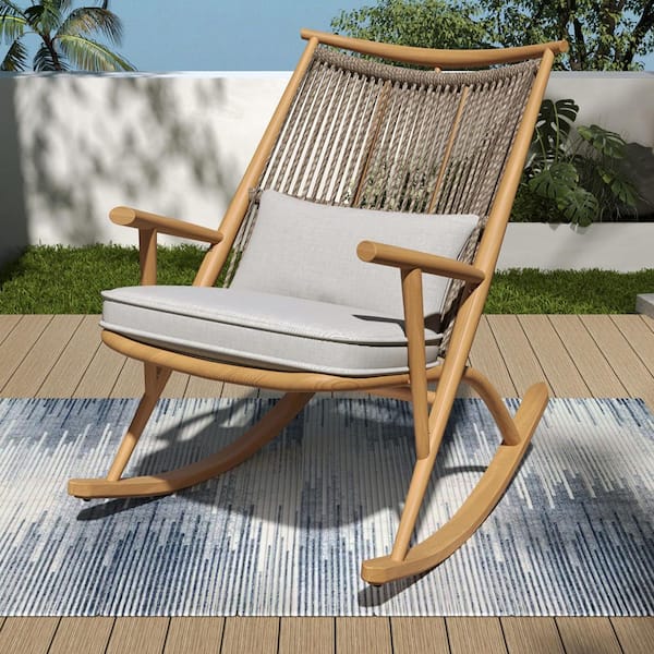 Maple Metal Outdoor Rocking Chair with Light Gray Cushion