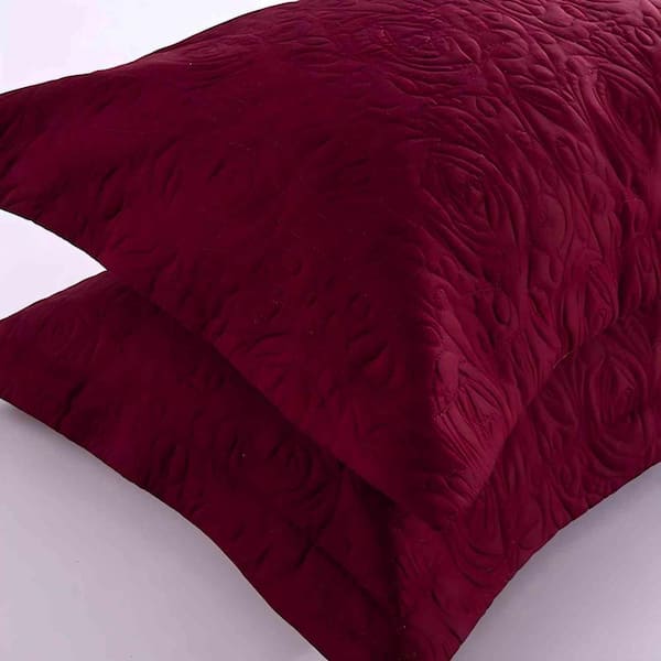 Burgundy Embroidery Pillow Shams Polyester King Size Pillow Protector