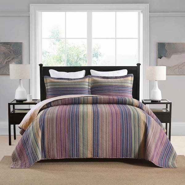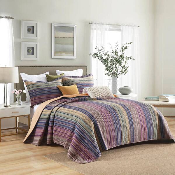 CP324 Purple Striped Queen Size 100% Cotton Quilt Bedspread Set