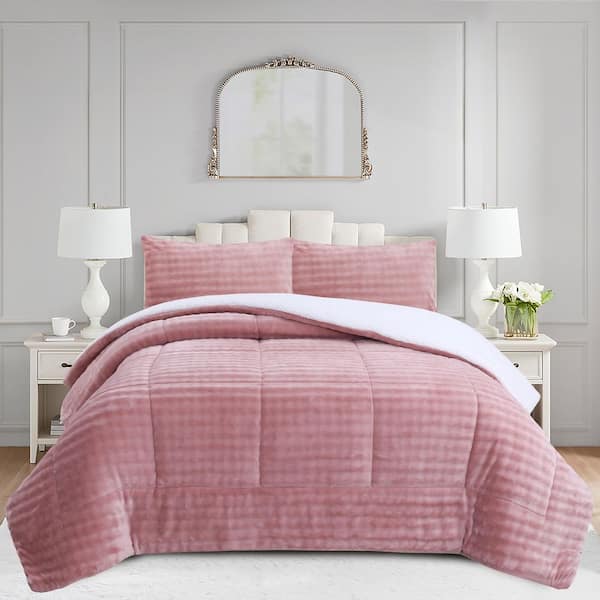 ME541 Pink Bubble Queen Size Polyester Flannel Sherpa Comforter Set