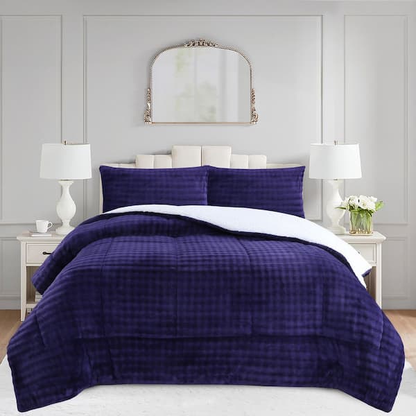 ME543 Purple Bubble Queen Size Polyester Flannel Sherpa Comforter Set