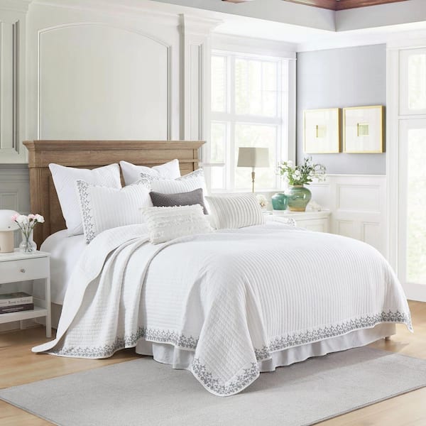 TC134 White Floral Embroidery Queen Cotton Quilt Bedspreads Set