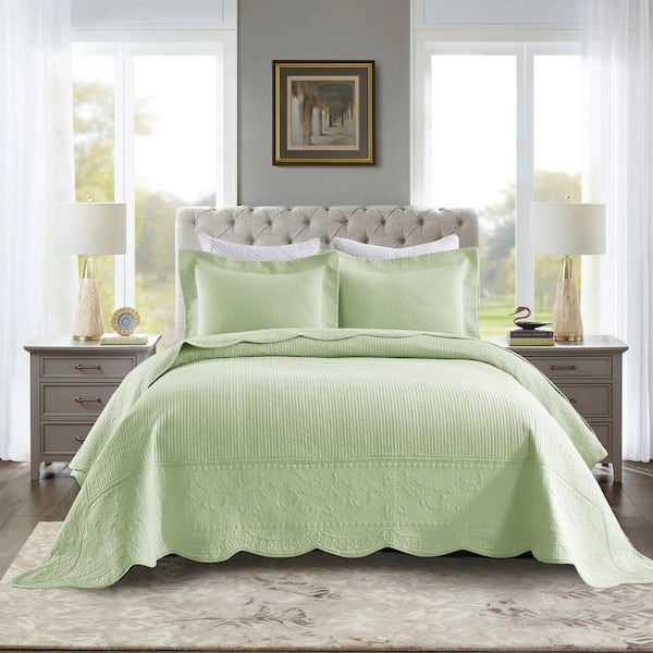 TG Elegantly Embroidered King Size Cotton Oversized Quilt Bedspread Set
