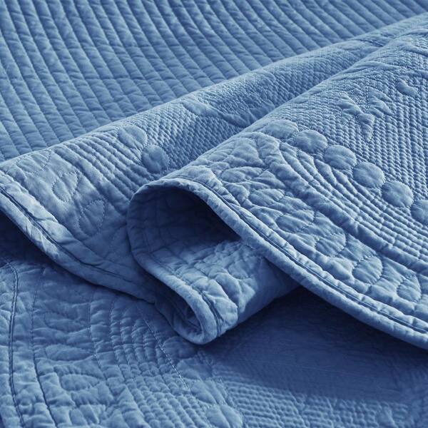 TG105 Midtone Blue Elegantly Embroidered King Size Cotton Oversized Quilt Bedspread Set