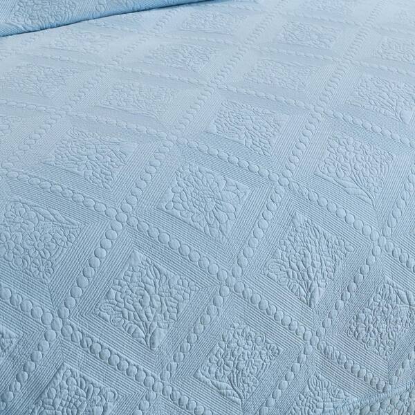 TK61 Light Blue Floral King Size Cotton Oversized Bedspread Set Coverlet Set Lightweight Quilt Set