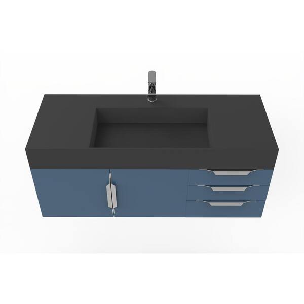 Maranon 48 in. W x 19 in. D x 19.25 in. H Single Bath Vanity in Matte Blue with Chrome Trim and Black Solid Surface Top