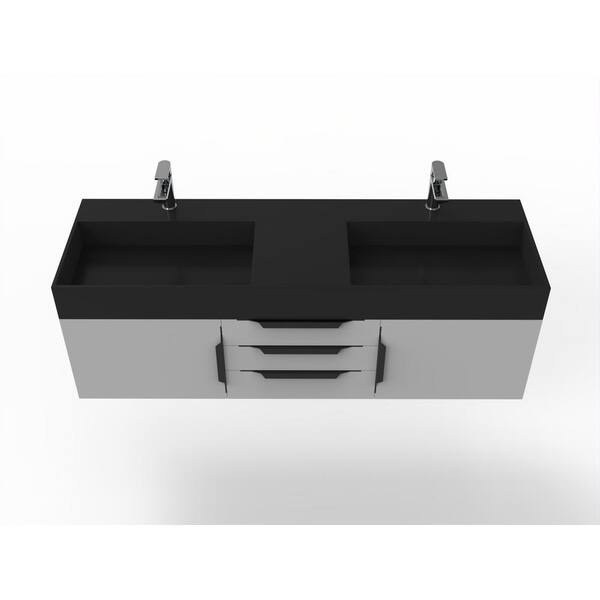 Maranon 60 in. W x 19 in. D x 19.25 in. H Double Floating Bath Vanity in Matte Gray with Black Trim and Black Top