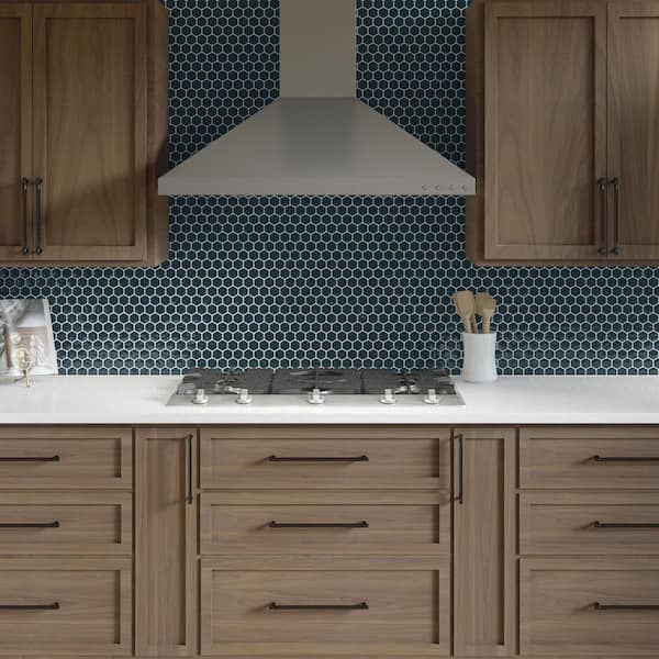 Artezen Deep Blue 12 in. x 10 in. Glossy Ceramic Hexagon Mosaic Wall Tile (9.72 sq. ft. /case)