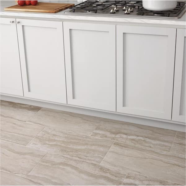 Vettuno 12 in. x 24 in. Greige Glazed Porcelain Floor and Wall Tile Sample