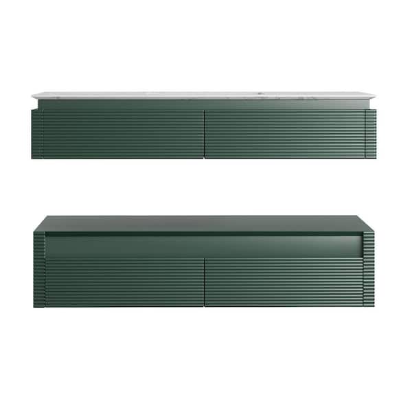 MarbleLux 48 in. W x 20.8 in. D x 21.2 in. H Wall Mounted 2-Set Bath Vanity with 1 Sink in Green with White Marble Top