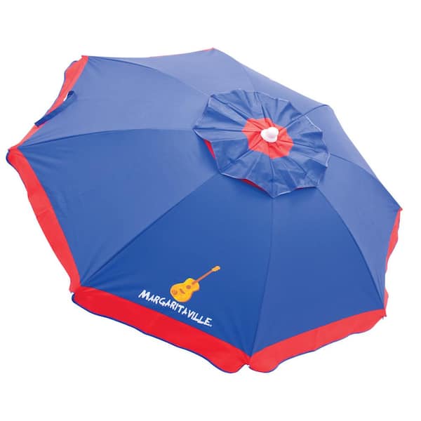 6 ft. Outdoor Market Patio Umbrella with Integrated Sand Anchor in Blue/Green Stripes