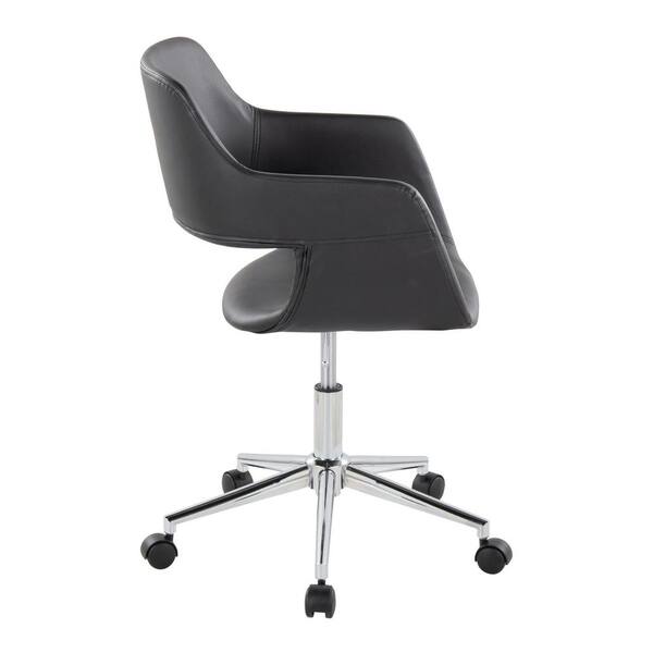 Margarite Faux Leather Adjustable Height Task Chair in Black Faux Leather and Chrome Metal with 5-Star Caster Base