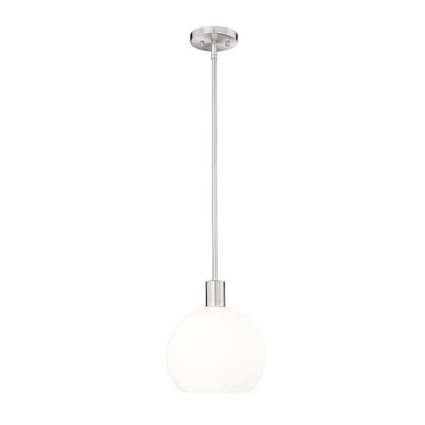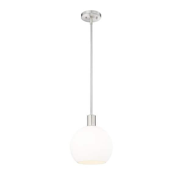 Margo 9.75 in. 1-Light Bubble Pendant Brushed Nickel with White Glass Shade