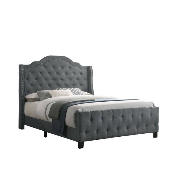 Mariana Gray Linen Upholstered Panel Queen Bed with Tufted Buttons