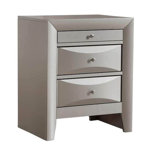 Marilla 3-Drawer Silver Champagne Nightstand (28 in. H x 23 in. W x 17 in. D)