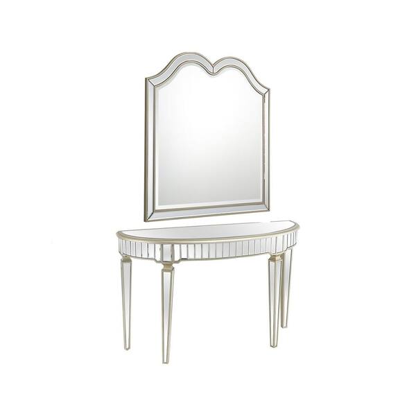 Marilyn 47.5 in. Champagne Half Moon Glass Console Table with Wall Mirror