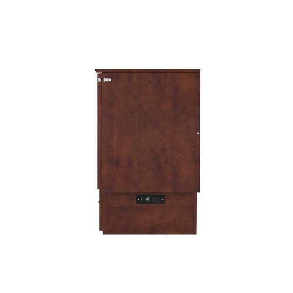 Marina Brown Walnut Solid Wood Frame Twin Murphy Bed Chest with Built-in Charging Station and Storage Drawer