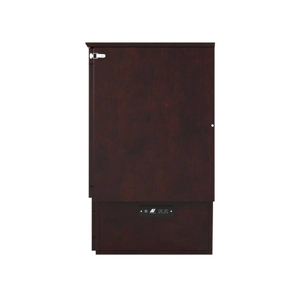 Marina Espresso Brown Solid Wood Frame Queen Murphy Bed Chest with Built-in Charging Station and Storage Drawer