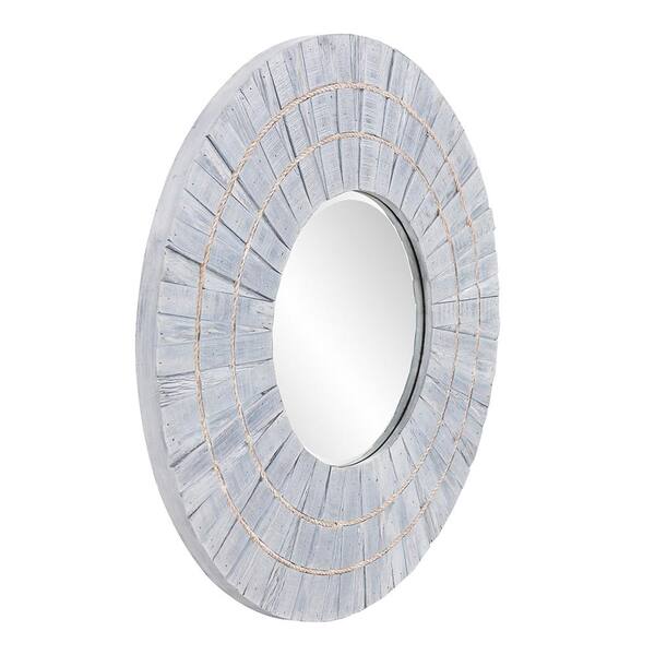 Medium Round Blue Gray Wash Beveled Glass Casual Mirror (36 in. H x 36 in. W)