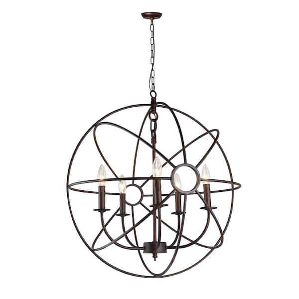 Marlon 5-Light Rustic Black No Decorative Accents Globe Chandelier for Living Room