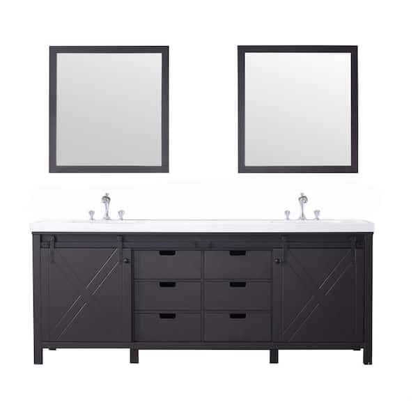 Marsyas 84 in W x 22 in D Brown Double Bath Vanity, White Quartz Countertop, Faucet Set and 34 in Mirrors