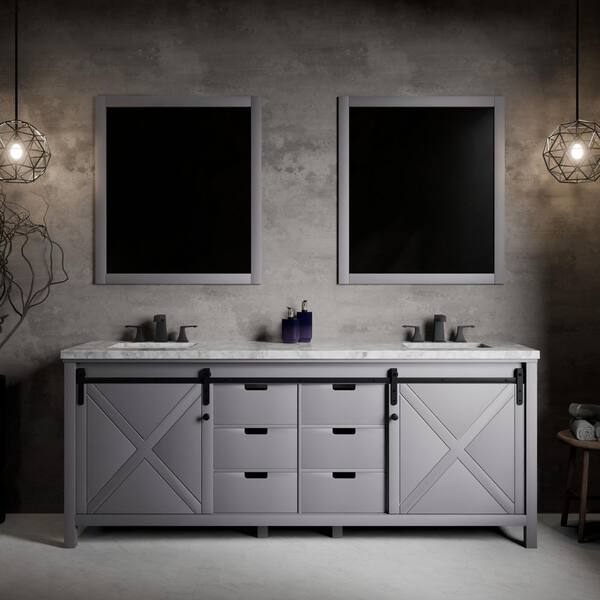 Marsyas 84 in W x 22 in D Dark Grey Double Bath Vanity, Carrara Marble Countertop, Faucet Set and 34 in Mirrors