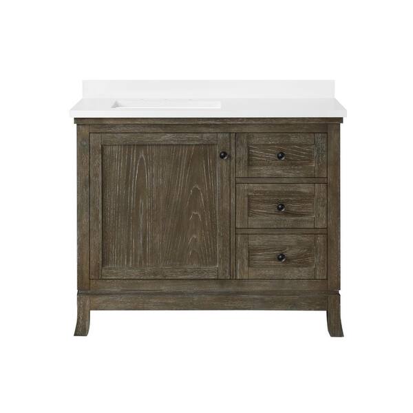 Meadow 42 in. W x 22 in. D x 34 in. H Single Sink Bath Vanity in Cerused Walnut with White Engineered Stone Top