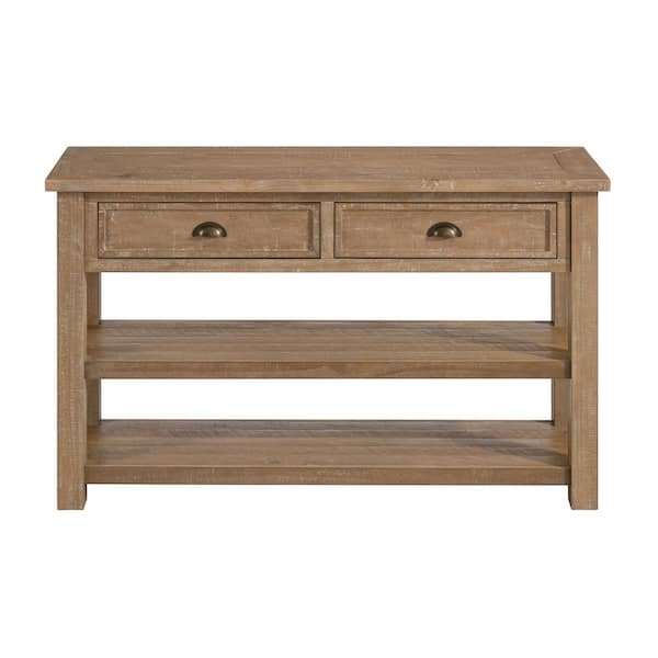 Monterey 50-In. Driftwood Rectangle Solid Wood Sofa Console Table with Drawers and Shelves