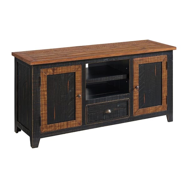 Monterey Black and Honey Solid Wood TV Stand Fits TVs 60 in. Up to 65 in. with Storage